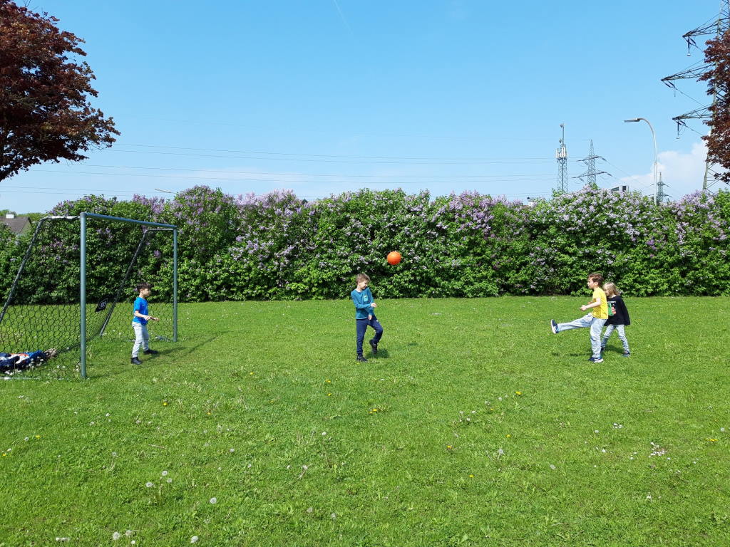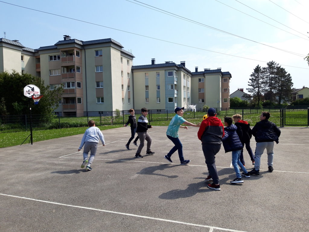 Ob im Sportunterricht oder in den Pausen- unser großer Schulgarten wird von allen Klassen gerne genutzt. Besonders beliebt sind derzeit die neuen Fußballtore und Basketballkörbe.