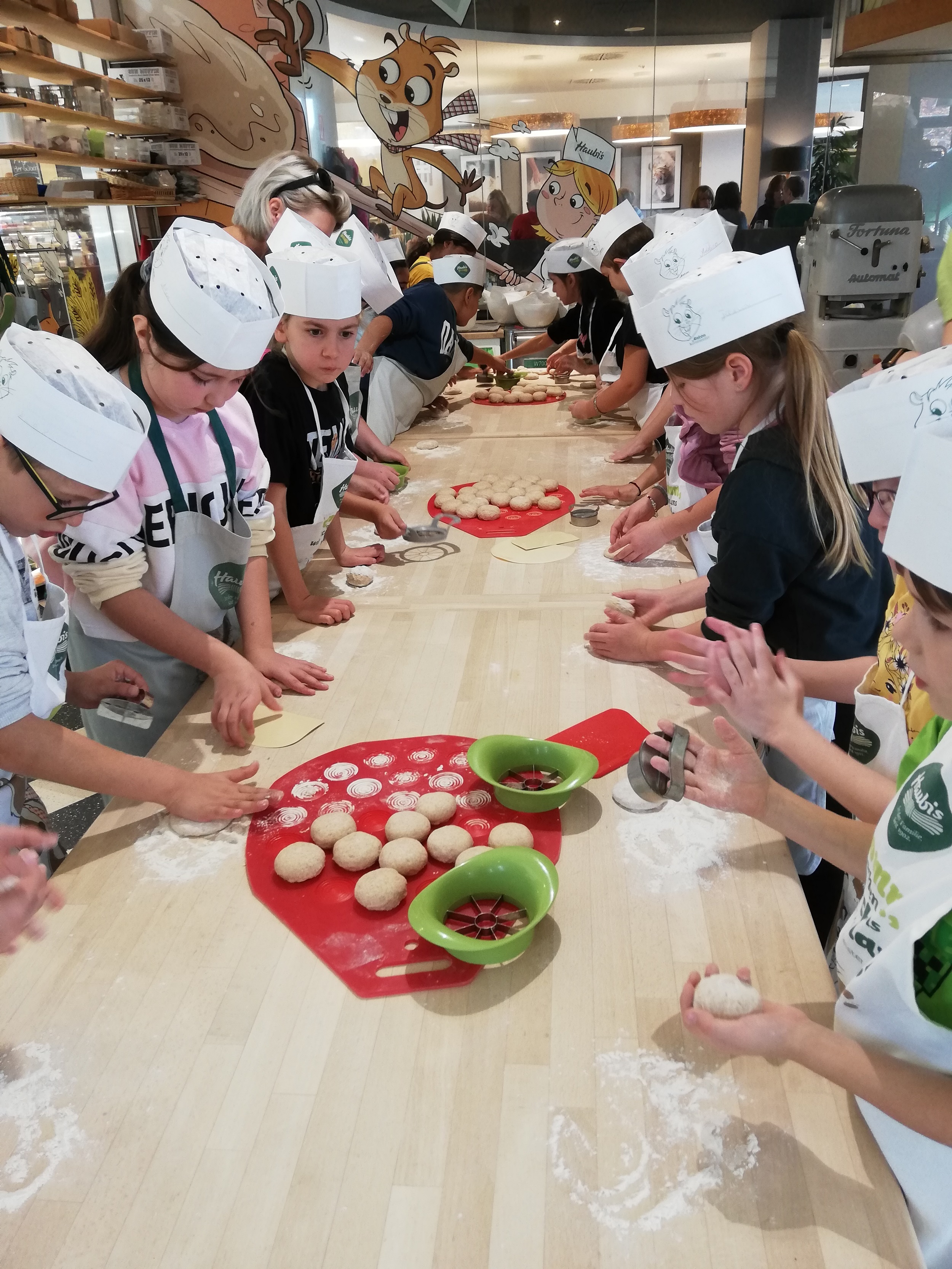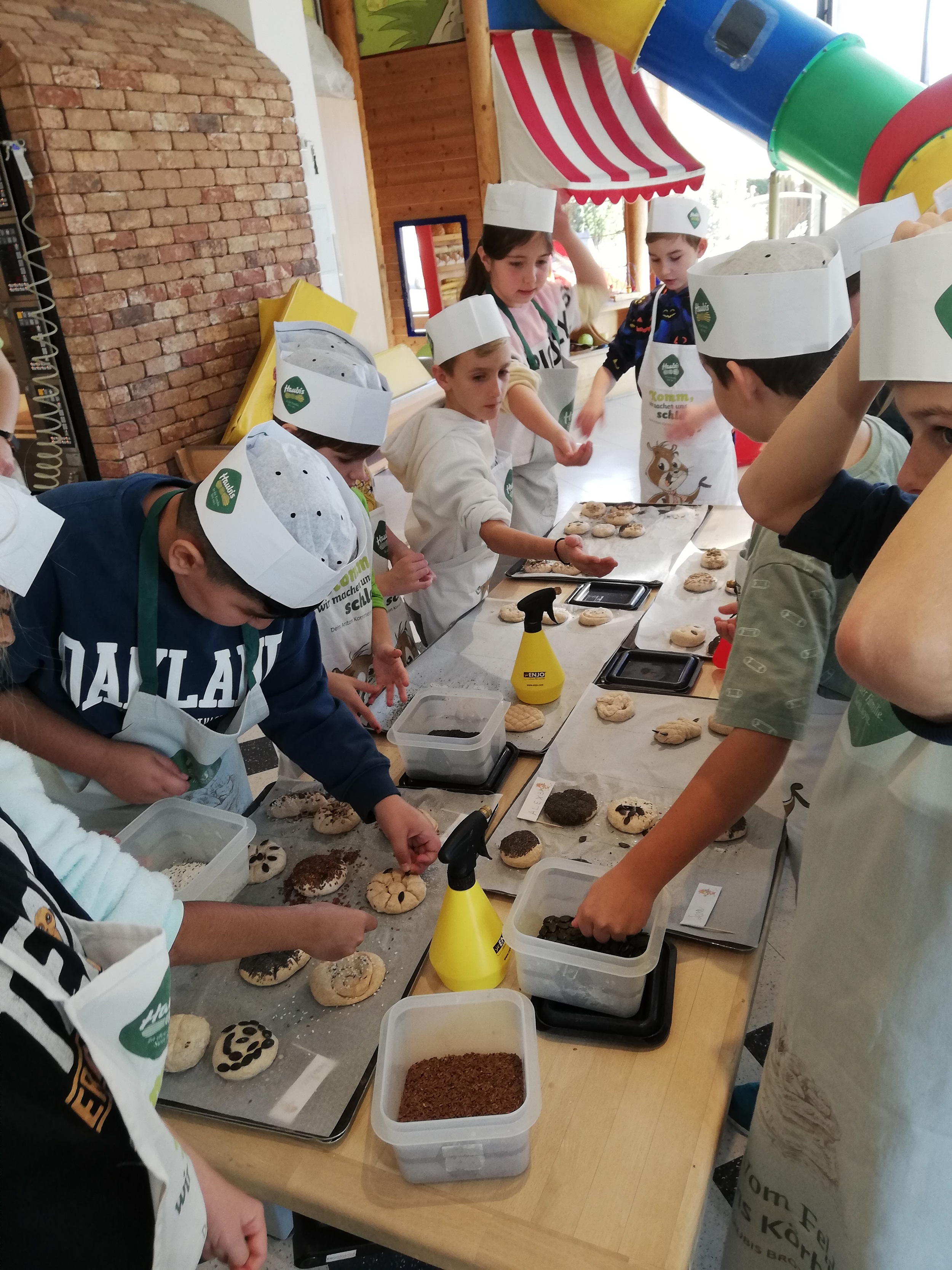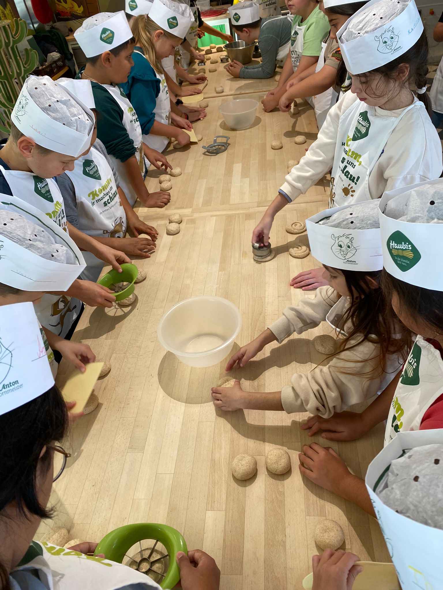 Am 7. November 2023 besuchten die beiden dritten Klassen das Haubiversum in Petzenkirchen. Bei der Führung erfuhren die Kinder viel Spannendes über die Herstellung von Brot und Gebäck und erlebten den Weg eines Teiglings zur fertigen Semmel. In der Backstube formte jedes Kind drei Weckerl und bestreute sie mit Samen und Gewürzen. Zur großen Freude der Kinder durfte das fertige Gebäck mit nach Hause genommen werden.