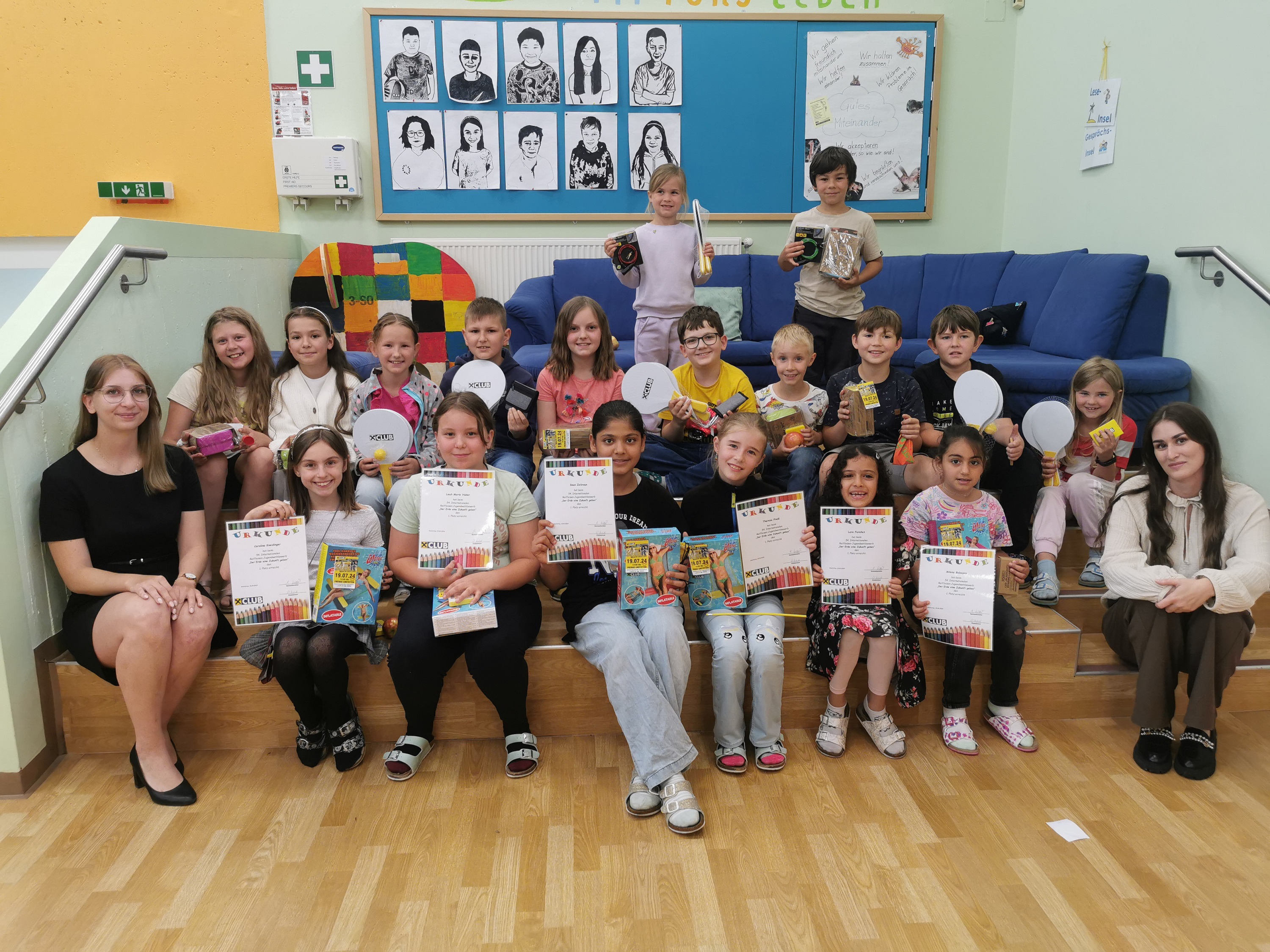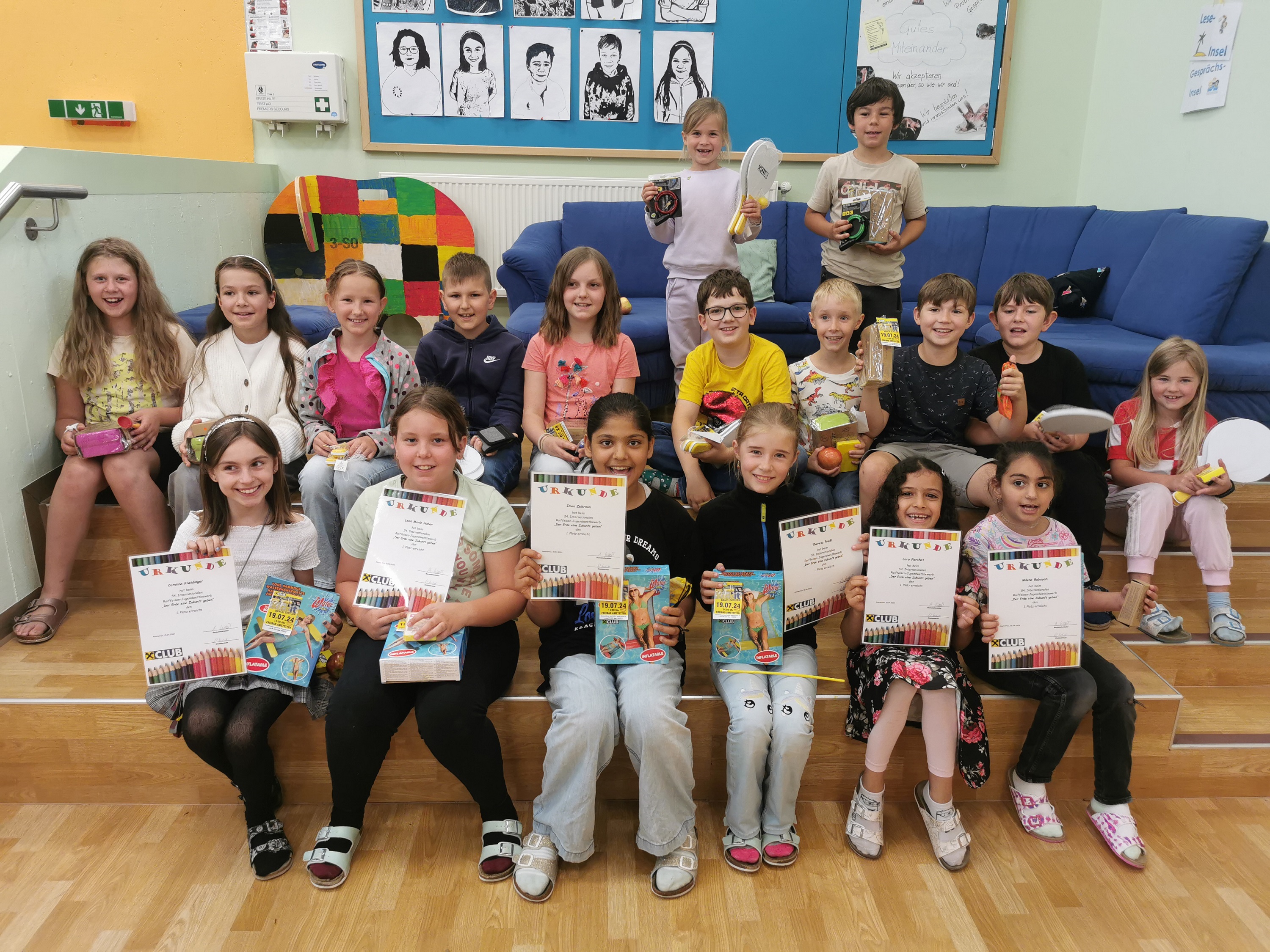 Diese Kinder erreichten beim diesjährigen Raiffeisenbank Malwettbewerb den ersten Platz. Unter dem Motto „Der Erde eine Zukunft geben“ , gestalteten die Schüler und Schülerinnen tolle Zeichnungen.