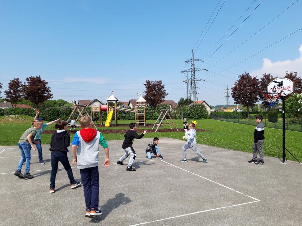 Ob im Sportunterricht oder in den Pausen- unser großer Schulgarten wird von allen Klassen gerne genutzt. Besonders beliebt sind derzeit die neuen Fußballtore und Basketballkörbe.